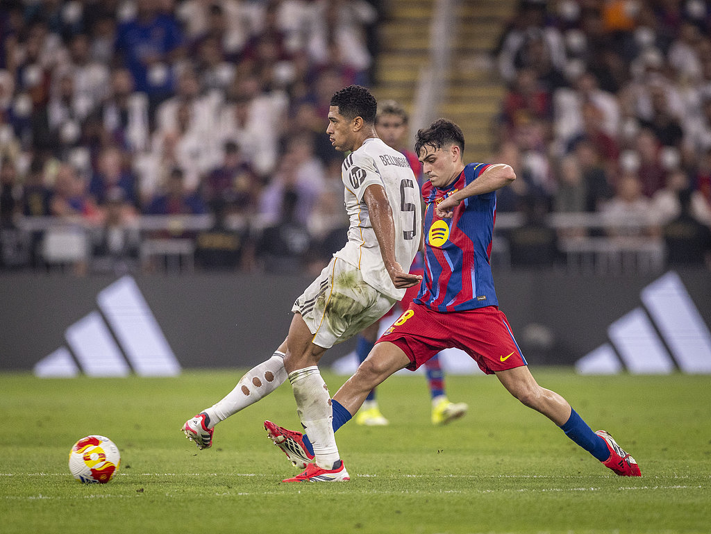 上半时的大多数时间里,两支球队显得有些慢热,而半场的最后20分钟国家德比的精彩指数迅速拉满,巴萨两度领先,皇马两度扳平。赛后媒体询问阿隆索,当时皇马是不是有些失控?很明显,半场的平局并不能掩饰皇马的狼狈。