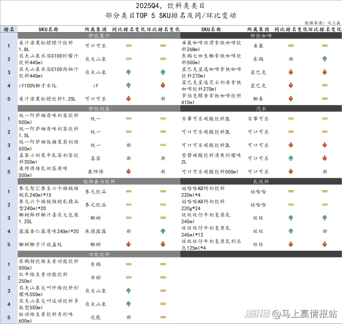 在本季度饮料类类目的Top SKU变动上,几个点的变化值得关注: