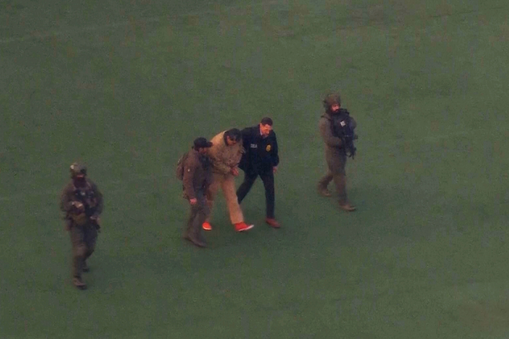 当地时间2026年1月5日,美国纽约,视频截图显示,委内瑞拉总统尼古拉斯·马杜罗被护送登上直升机,前往曼哈顿联邦法院。视觉中国 图
