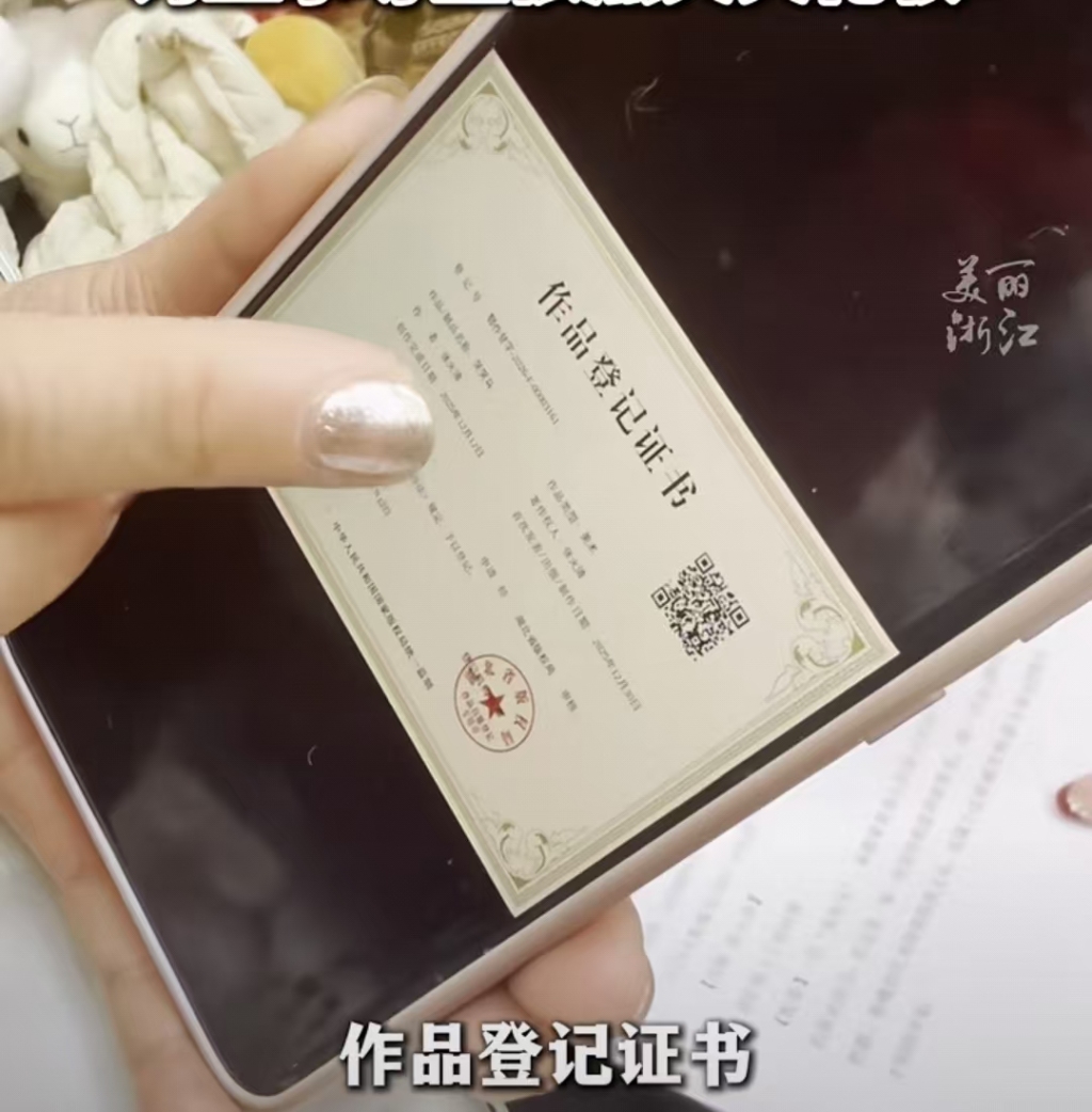我注意到,在一家媒体的采访中,老板娘展示了“哭哭马”的《作品登记证书》,也就是说,老板娘申请的大概率是“哭哭马”的另一项知识产权——著作权,而非专利权。