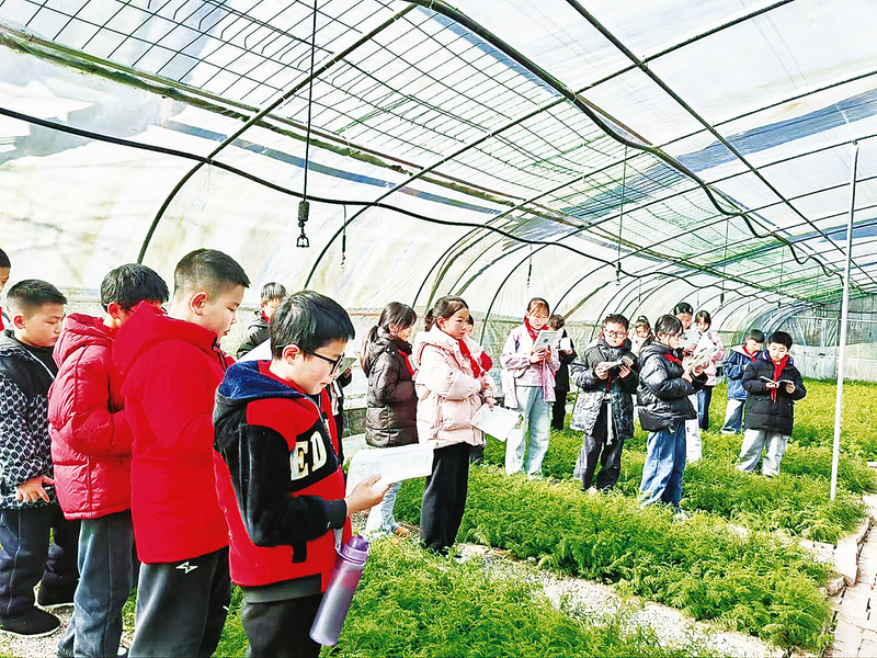 学生在崖柏基地开展研学活动。