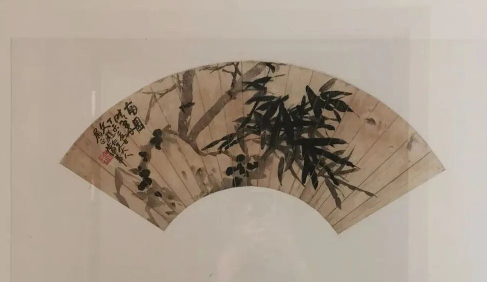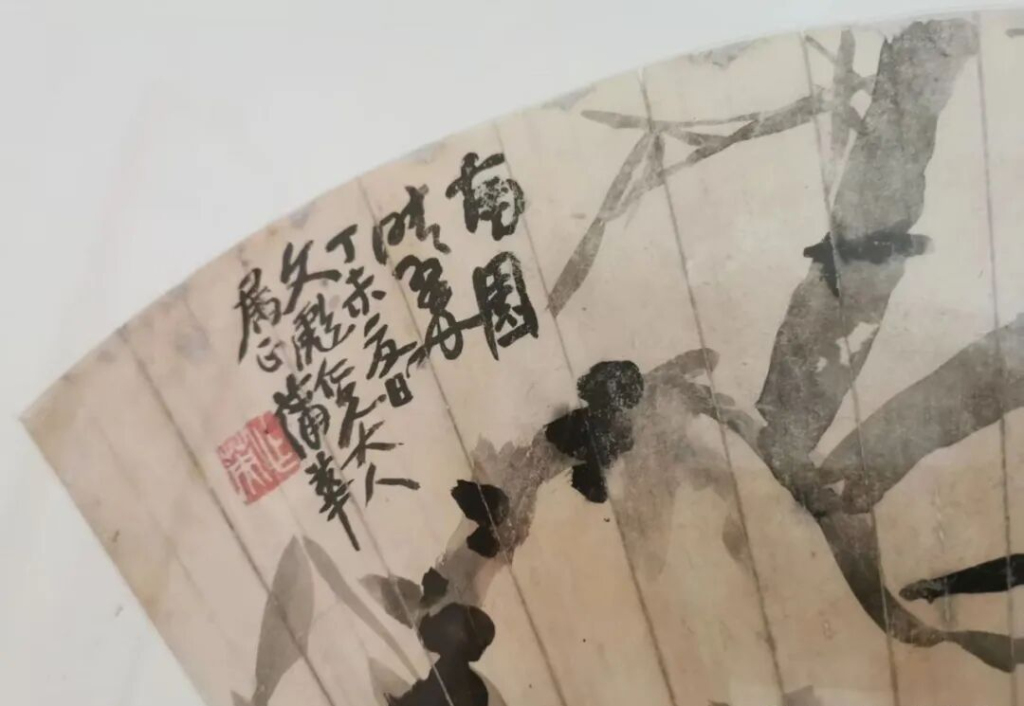 蒲华《竹石图》扇面,款识:“南园晴翠,丁未夏日,文彪仁兄大人属正 ”。