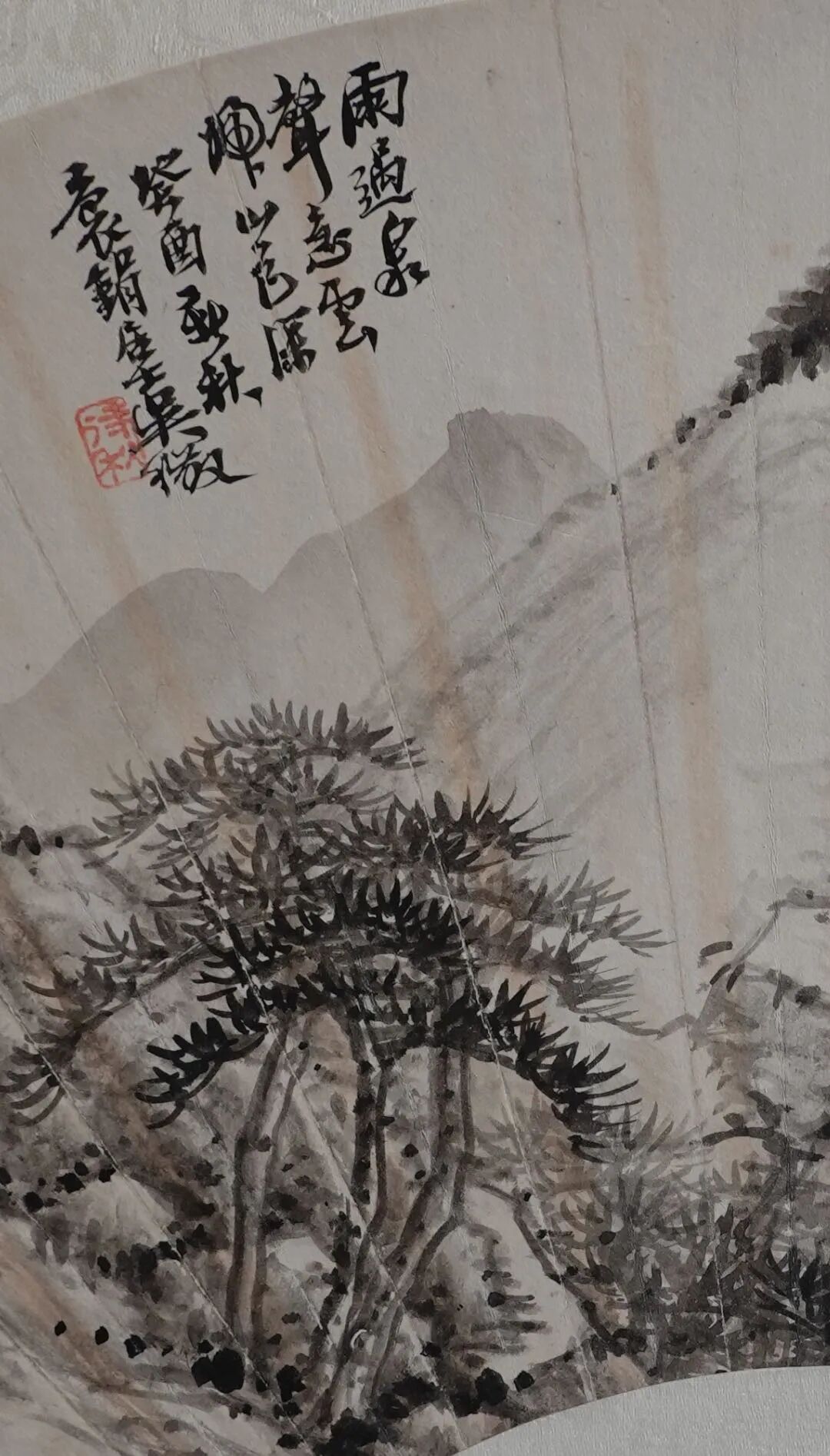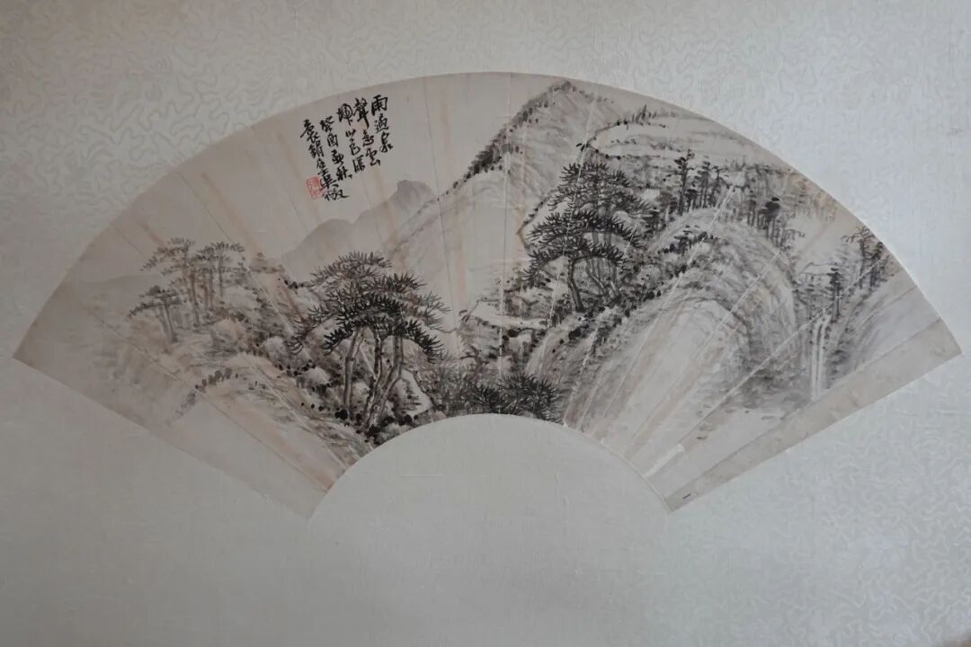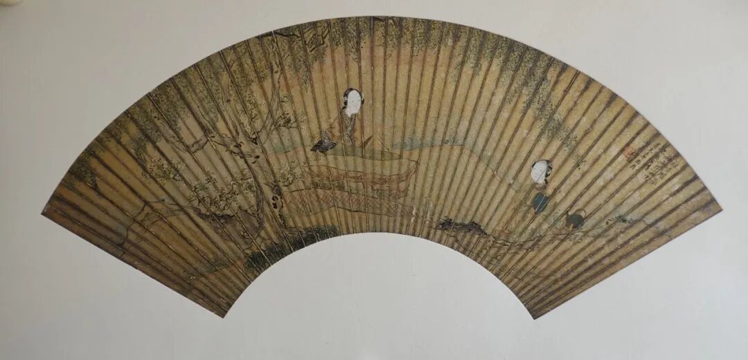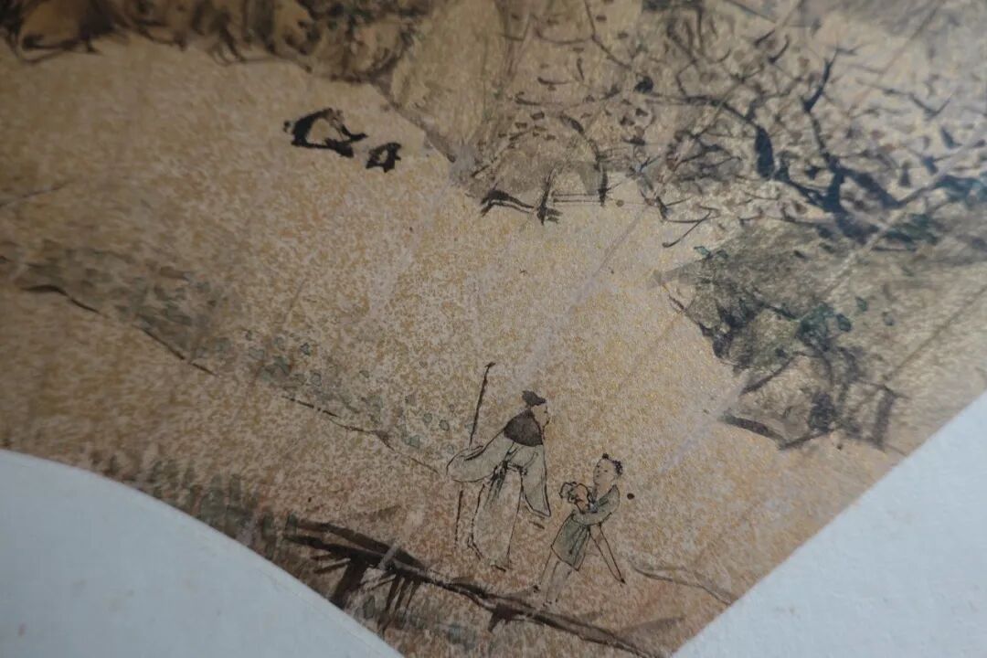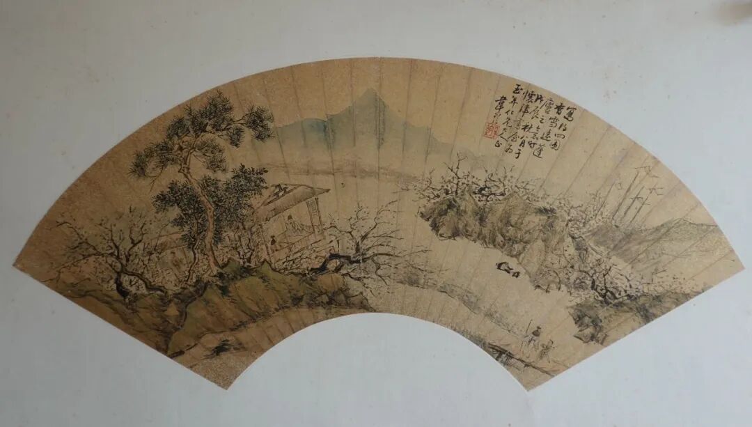 韦鉴,字子钧,号邓尉山民,清代苏州籍画家,画风清雅疏逸,《近世一百名家集》。香雪漫山,松梅茅舍。携琴访友,知己无他。笔墨简淡,山水含韵,尽得文人扇 “小中见雅” 之致。