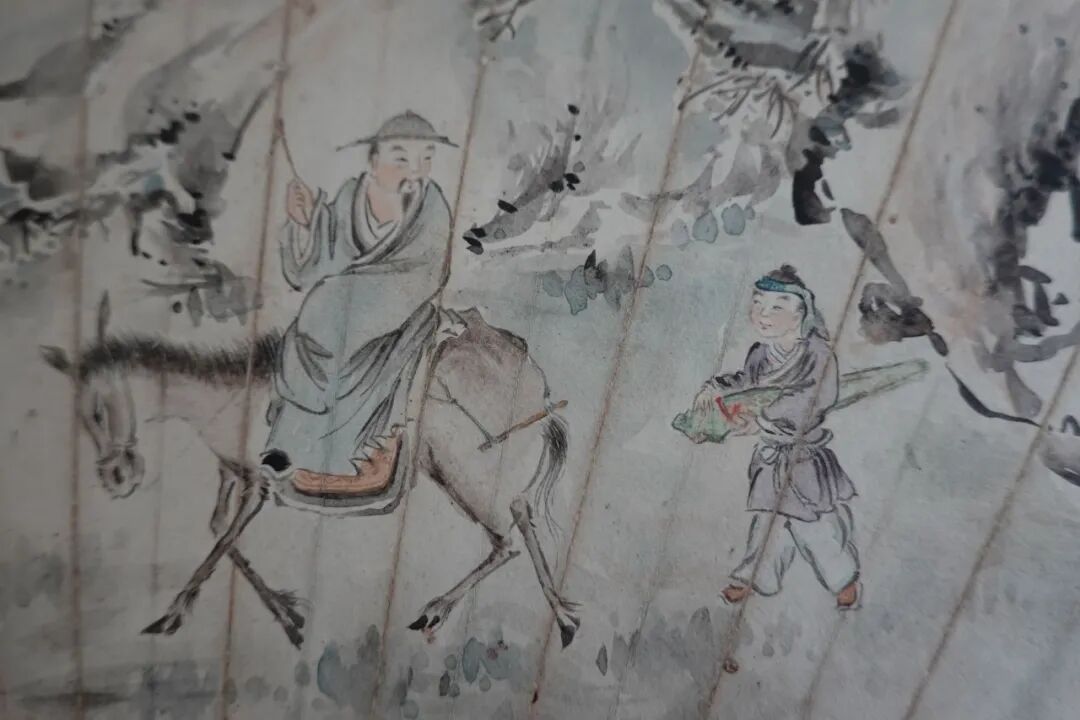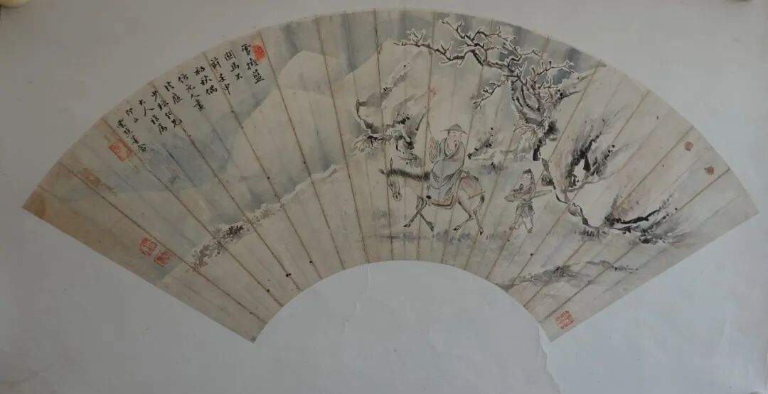 清·董云樵《携琴远行图》扇面 款识:雪拥蓝关马不前,壬申初秋偶仿元人画法,应少耘仁兄大人雅嘱,即正。云樵董畲