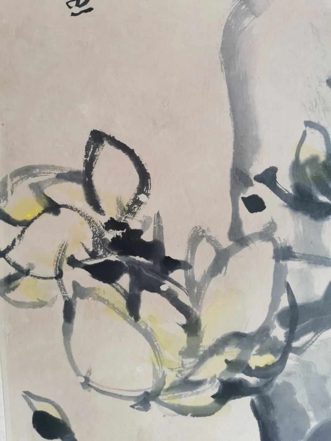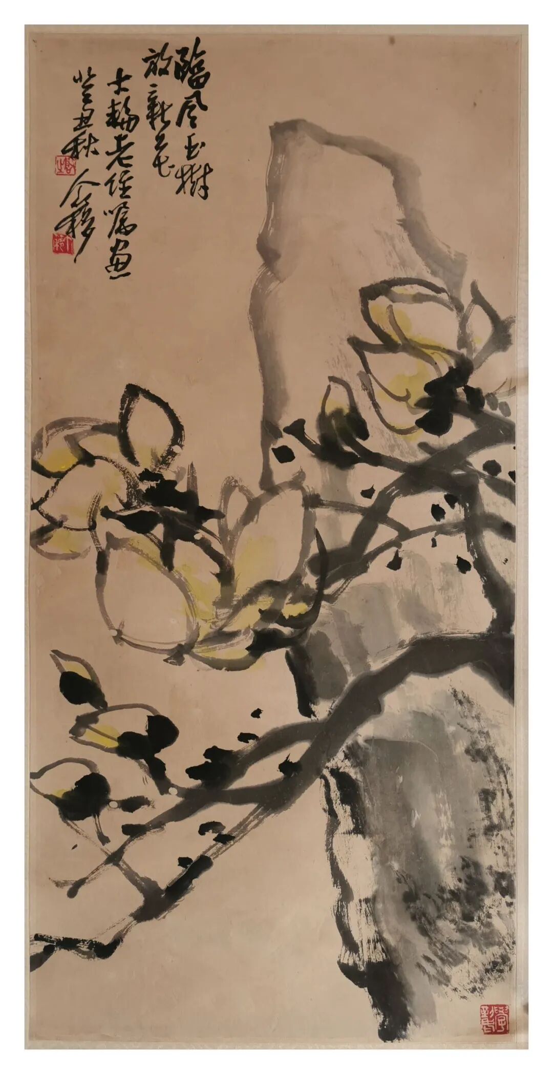 王个簃《玉兰》立轴 款识:临风玉树放新花,大轮老侄嘱画,癸丑秋,个簃 钤印:启之、个簃、学到老