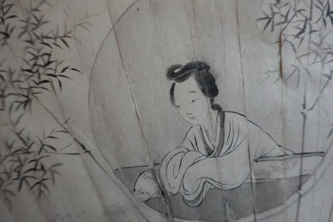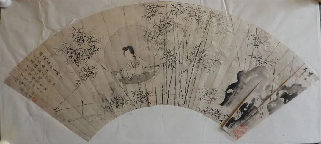 李育,字梅生,晚清扬州画派代表画家,以小帧扇面创作见长。疏竹掩映间,闲坐窗前女子拥琴凝思,姿态温婉,气质娴静,摹黛玉之风神。竹石清疏,蕴文人之风雅。。