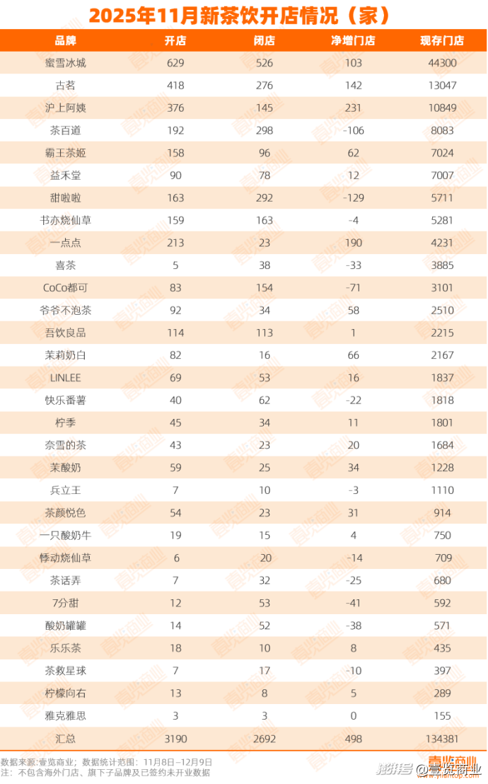相比同期霸王茶姬超7000家、茉莉奶白超2100家、爷爷不泡茶超2500家的全国门店网络,茶颜悦色的布局仍显集中且数量较少。