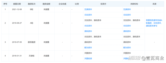 同年6月,茶颜悦色母公司湖南茶悦文化产业发展集团有限公司(下称“湖南茶悦文化”)的股权发生变更,顺为资本、五源资本、源码资本、元生资本、天图投资等7家投资机构均退出。