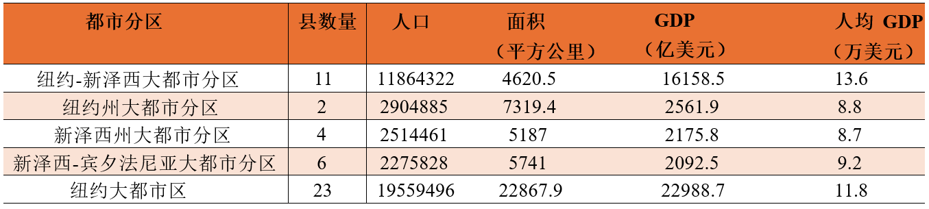 表4 2023年纽约大都市区四个分区情况