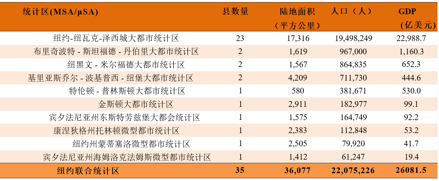 表5 纽约联合统计区的构成(2023年数据)