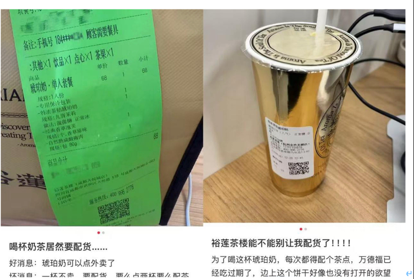 消费者质疑“裕莲茶楼”人气奶茶外卖捆绑销售,客服:将上线单杯选项