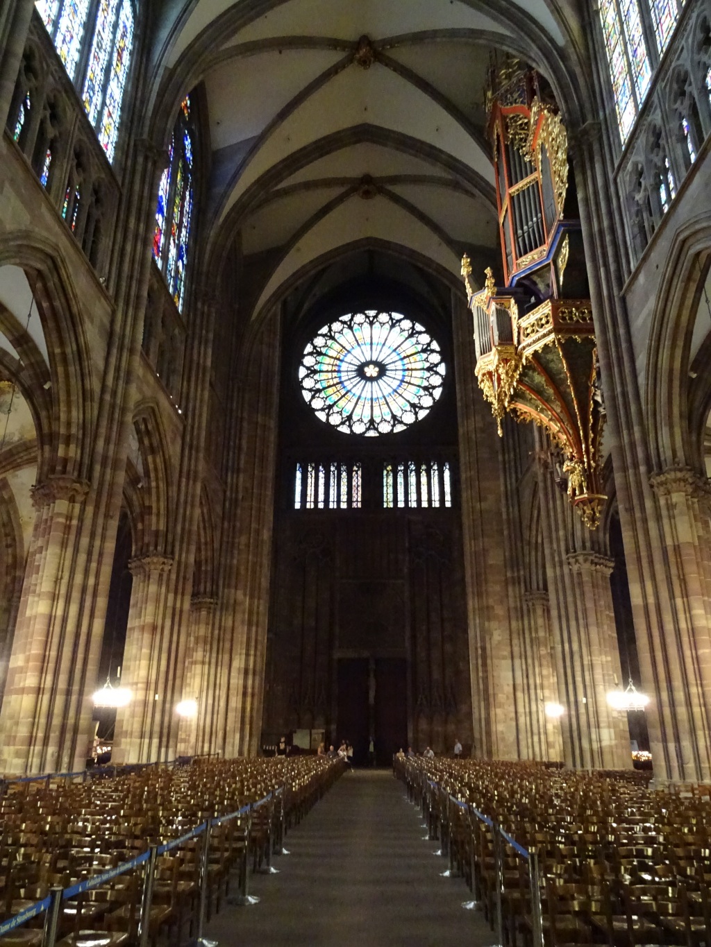 脚下的大教堂和这座城市,曾经是宗教风云之地。除了1262年爆发的市民反抗主教统治之外,它还是宗教改革时期的重镇。16世纪20年代,斯特拉斯堡深受马丁·路德的影响,其追随者在17世纪创办斯特拉斯堡大学,成为新教重地。但在1685年,路易十四公布《枫丹白露敕令》,宣布废除1598年的《南特敕令》,官方的宗教不宽容政策导致许多新教徒被逐出斯特拉斯堡和阿尔萨斯。斯特拉斯堡大教堂也从路德会手中被交给罗马天主教。但斯特拉斯堡大学仍在路德会控制下,一直坚持到了法国大革命时期,歌德也曾是该校学生。