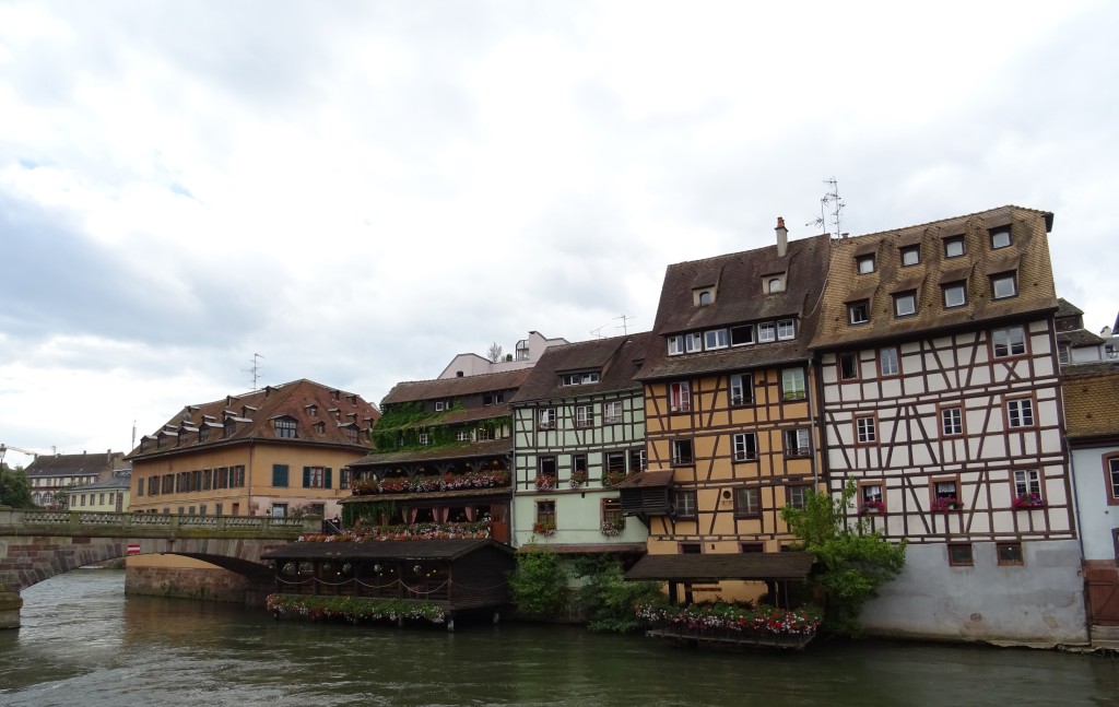 另一座圣马丁桥也是斯特拉斯堡风光明信片里最常见的素材,大量木筋屋立于水道旁,有住宅在临河平台处开了小花园,精巧惬意。最显眼的当属桥头那座,建筑临河外立面呈阶梯式,辟为餐厅,窗台布满鲜花,爬山虎攀援墙身,极具童话感。