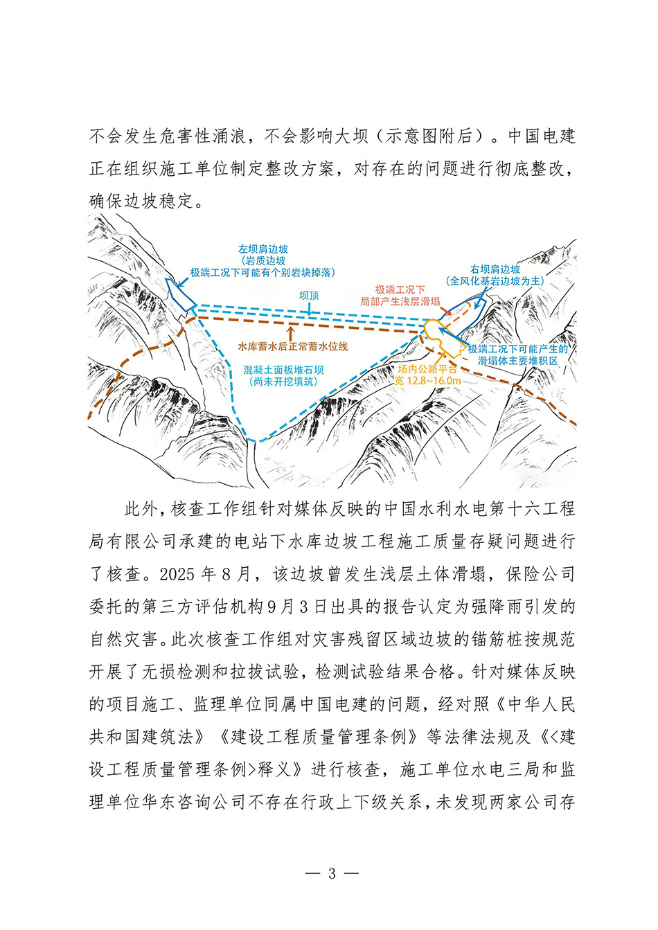针对媒体反映的项目施工、监理单位同属中国电建的问题,通报称,经对照《中华人民共和国建筑法》《建设工程质量管理条例》等法律法规及《<建设工程质量管理条例>释义》进行核查,水电三局和华东咨询公司不存在行政上下级关系,未发现两家公司存在参股、联营等关系。