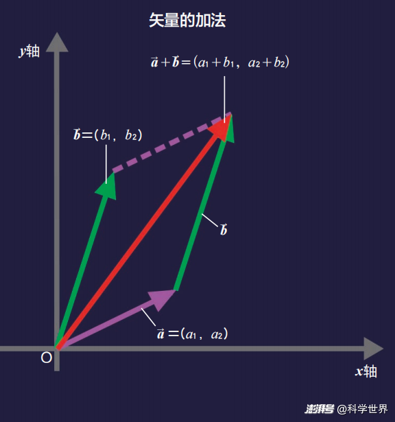 比如取一个0度方向的单位矢量i和一个90度方向的单位矢量j,单位矢量的长度为1。把它们直接相加得到i+j,即i和j的系数都是1,这就是一个45度方向的矢量,长度为√2。