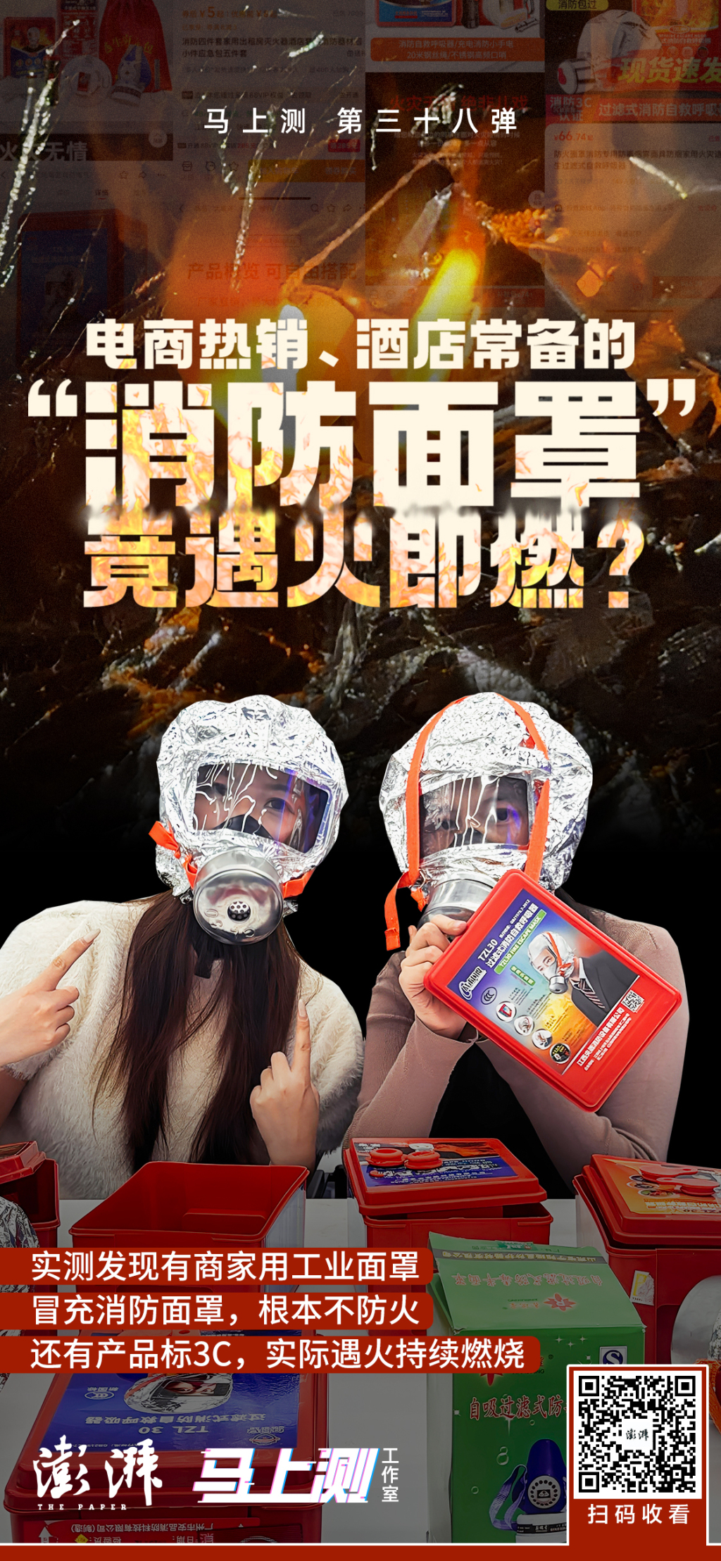 马上测丨实测火场救命用的消防面具(下):5家连锁酒店内有的未配备,有面罩遇火即燃
