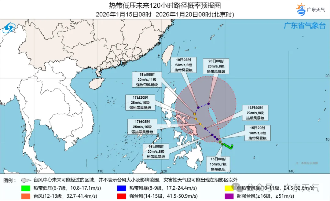 路径方面,该热带低压将往偏西北方向移动,下周初受冷空气带来的东北季风影响,可能在菲律宾以东洋面徘徊,对广东省海面无直接影响。