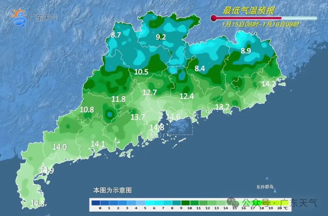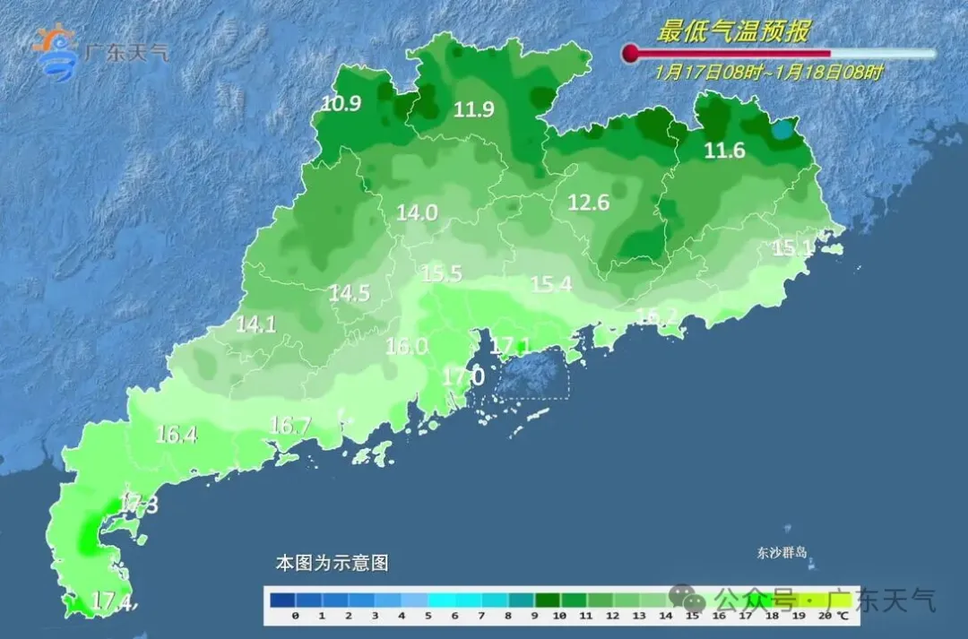 预计15-18日,广东大部晴到多云,气温总体趋于回升,昼夜温差大,早晚寒凉,注意适时增减衣物。另外,西部的部分市县早晚有轻雾或雾。