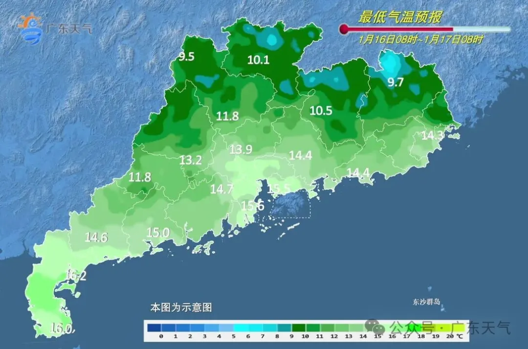 具体来看,16日,粤西、肇庆、云浮、清远、韶关和粤东市县多云,其余市县晴天间多云。粤西和珠三角西部市县早晚有(轻)雾。最低气温:粤北和珠三角北部市县7~11℃,雷州半岛17~19℃,其余市县12~15℃。