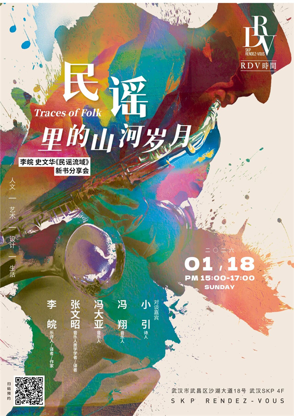 一座城市让你想起了什么样的歌谣?当熟悉的歌声飘荡在耳边,它是否勾起了你遥远的回忆?在互联网的海量歌曲中,我们为什么还需要这样一本书?1月18日,诗人小引、音乐人冯翔、冯大亚、音乐人类学学者张文昭与《民谣流域》作者、乐评人李皖一起做客SKP,与我们一起在江城武汉,追溯民谣这条大河的源头,回顾民谣里的山河岁月。