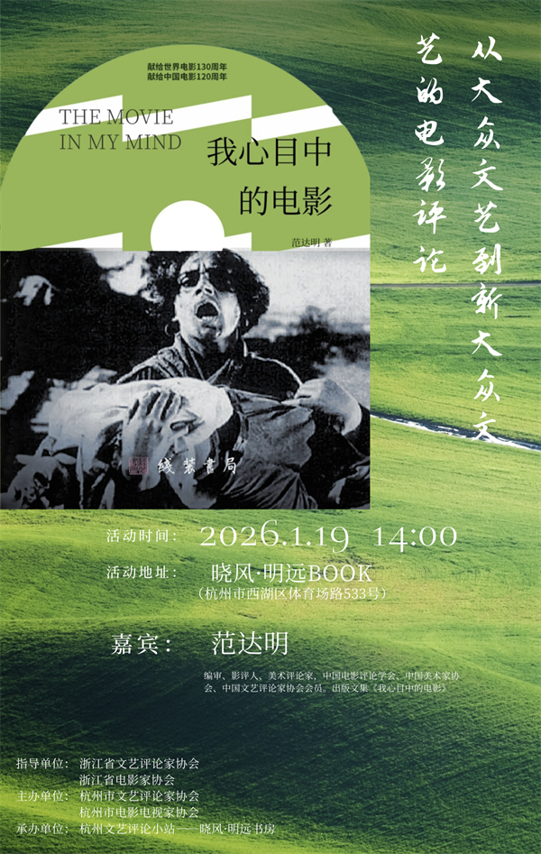 范达明先生深耕电影评论领域数十载,以敏锐的审美洞察与扎实的理论功底,见证并记录了中国电影从传统大众文艺向新形态演进的全过程。《我心目中的电影》凝聚了他多年来的评论精髓,既收录了对经典影片的深度解读,也包含对当代电影生态的前沿思考。1月19日下午,美术评论家、影评人范达明先生携新书来到晓风·明远书院。他将以个人影评生涯为切口,深度拆解《我心目中的电影》的核心脉络与珍贵资料,回溯自身电影理论的萌芽与影评写作的发展历程。