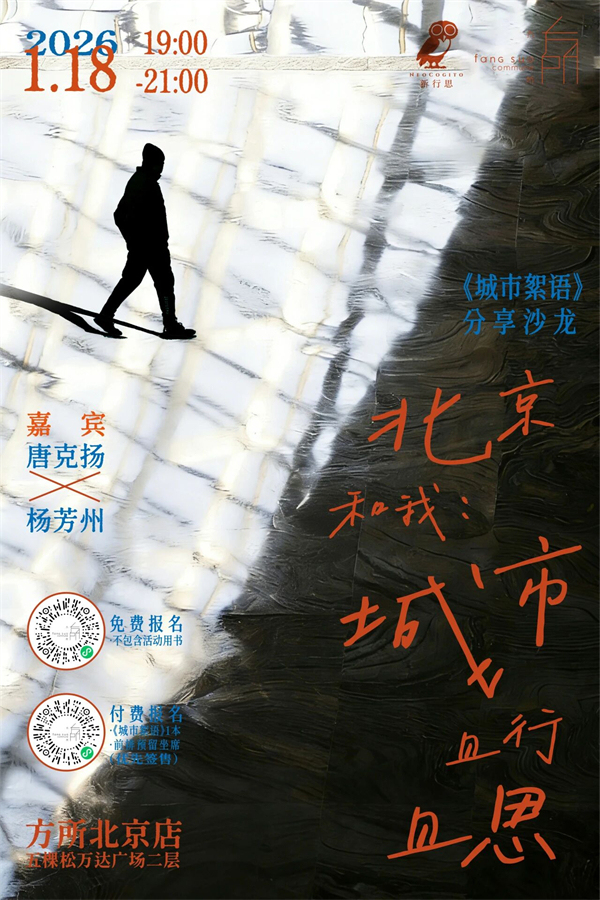 北京是一座被“大路”不断重写的城市。在《城市絮语》中,唐克扬以建筑与城市研究者的视角,回到街道本身,追问城市秩序的形成逻辑,以及它对人的影响。当自然生长的曲巷被统一的道路体系取代,当丰富被简化为可管理的秩序,我们是否也在无声中失去了某种生活的可能性?1月18日,我们邀请到唐克扬与本书策划编辑杨芳州,以“北京和我”为线索,重走北京的新路与旧道,带领读者在行走中思考城市,在熟悉的空间里重新看见被忽略的北京。