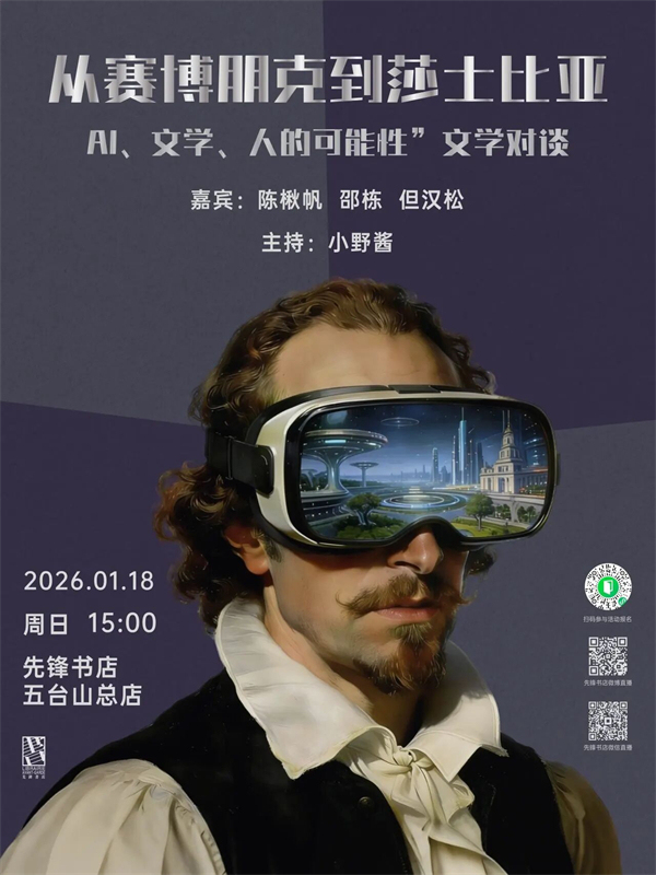 进步、学习与AI驱动的工作伦理,似乎已成为这个世界唯一认可的准则。在这般赛博朋克式的现实中,人们一面经历着AI对世界运行方式的重构,一面感受着自身在不确定性中的渺小。这样的世界是否还需要文学与小说?文科无用论的声调年复一年地响起,然而倘若没有文科,人类集体的记忆又将依靠什么来塑造?生活的意义感又将如何构建?作家与文科从业者们又如何思考这些问题?1月18日,我们邀请科幻作家陈楸帆、作家邵栋、南京大学英文系教授但汉松来到先锋书店五台山总店,与播客主播小野酱一起聊聊AI时代人与文学的更可能。