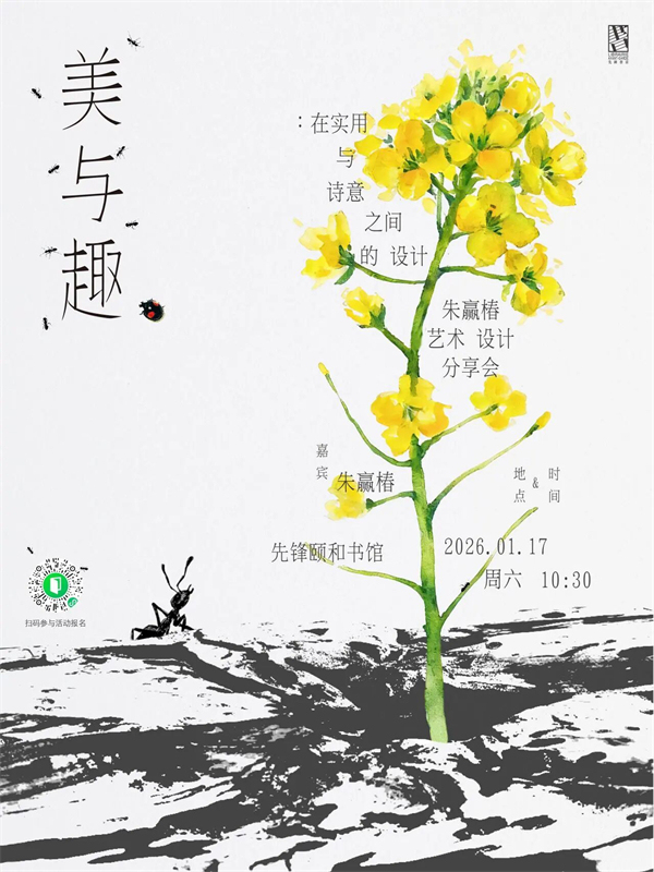 朱赢椿不仅是一位书籍设计师,也是身处城市、心系自然的艺术家。在工作室随园书坊的日子里,朱赢椿留心观察着身边出现的野草杂树和虫鱼鸟兽。一座泥蜂舍静静地置身于草木掩映之间,讲述着人类与自然和谐共生的故事。1月17日,设计师朱赢椿将来到焕新升级的先锋颐和书馆,与读者们一起重新发现被忽略的生活之美与自然之趣。