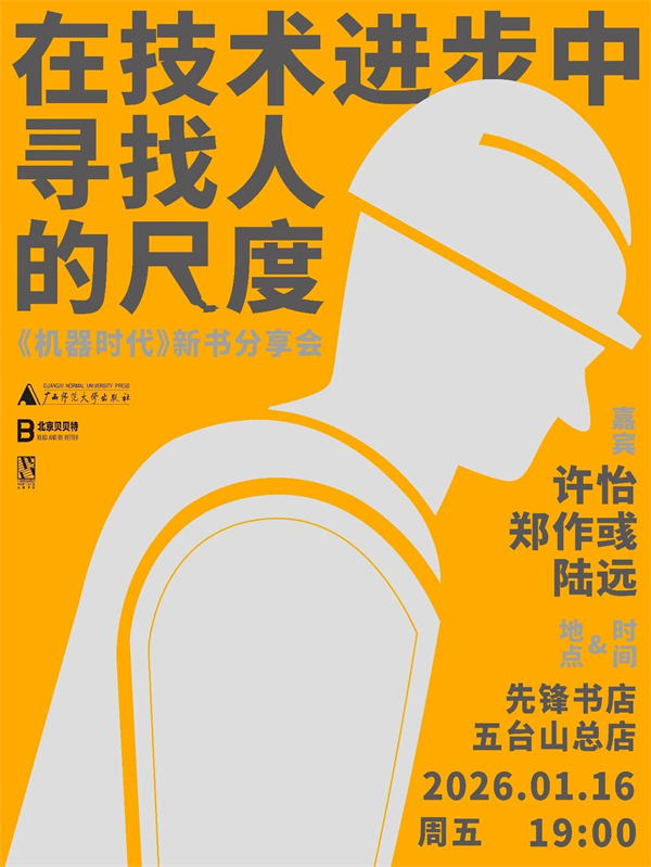 算法调度外卖骑手,自动化流水线取代人手,AI辅助代笔文书……伴随着“机器换人”这一技术叙事,一种“技术性失业”的普遍焦虑也开始弥漫。中山大学社会学与人类学学院教授许怡基于珠三角工厂的田野调查,写成了《机器时代:技术如何改变我们的工作和生活》一书,她对近十年间发生的“机器换人”现象给予较为详尽的描述,并提出了“机器霸权”概念用以解释技术进步并未带来相应的岗位增加和收入提升的社会悖论。1月16日晚,许怡教授将与南京大学社会学院的两位学者——郑作彧、陆远一同来到先锋书店五台山总店,共同追问效率神话之下人的迷失,探寻一种以人为本的技术未来。