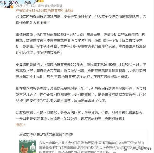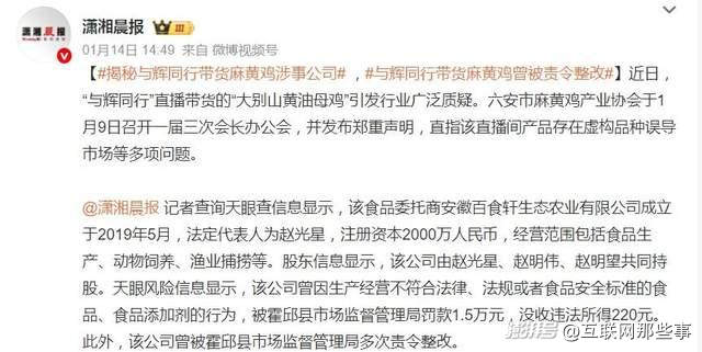 与辉同行带货“皖西麻黄鸡”引发质疑,监管部门回应-界面新闻