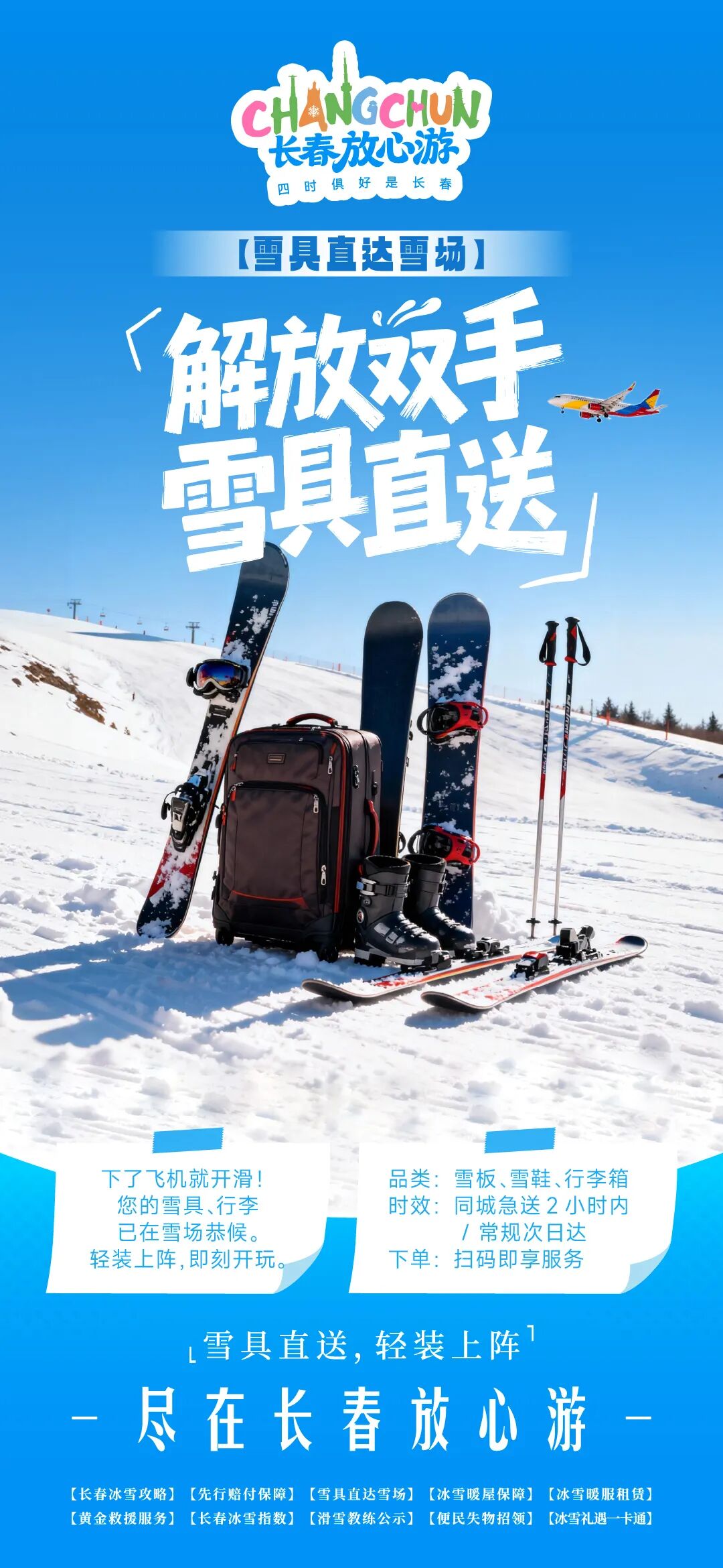更贴心的是,长春还有24小时涉旅投诉先行赔付、医疗救援3分钟响应、雪板机场“帮您送”等服务,让你放心玩、尽情嗨!