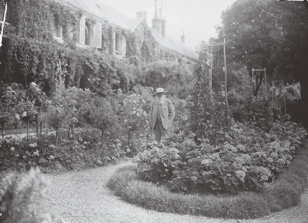 1920年的莫奈,在他位于吉维尼的花园中散步,这是他生活和创作超过四十年的地方。