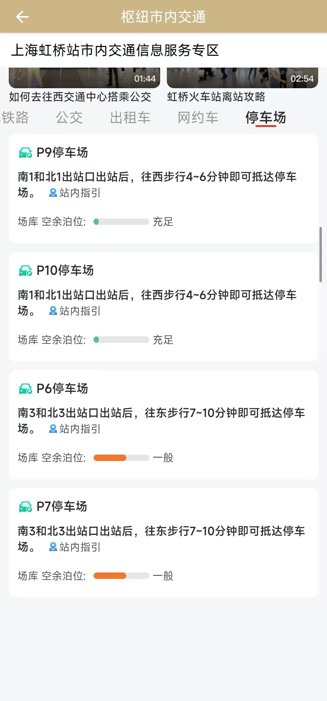 站点选择好后,可直接选择意向交通方式“地铁”“公交”“出租车”“网约车”等查看交通线路情况,有亲朋好友接送的旅客还可以选择“停车场”,进行查看车库空余泊位是否充足。