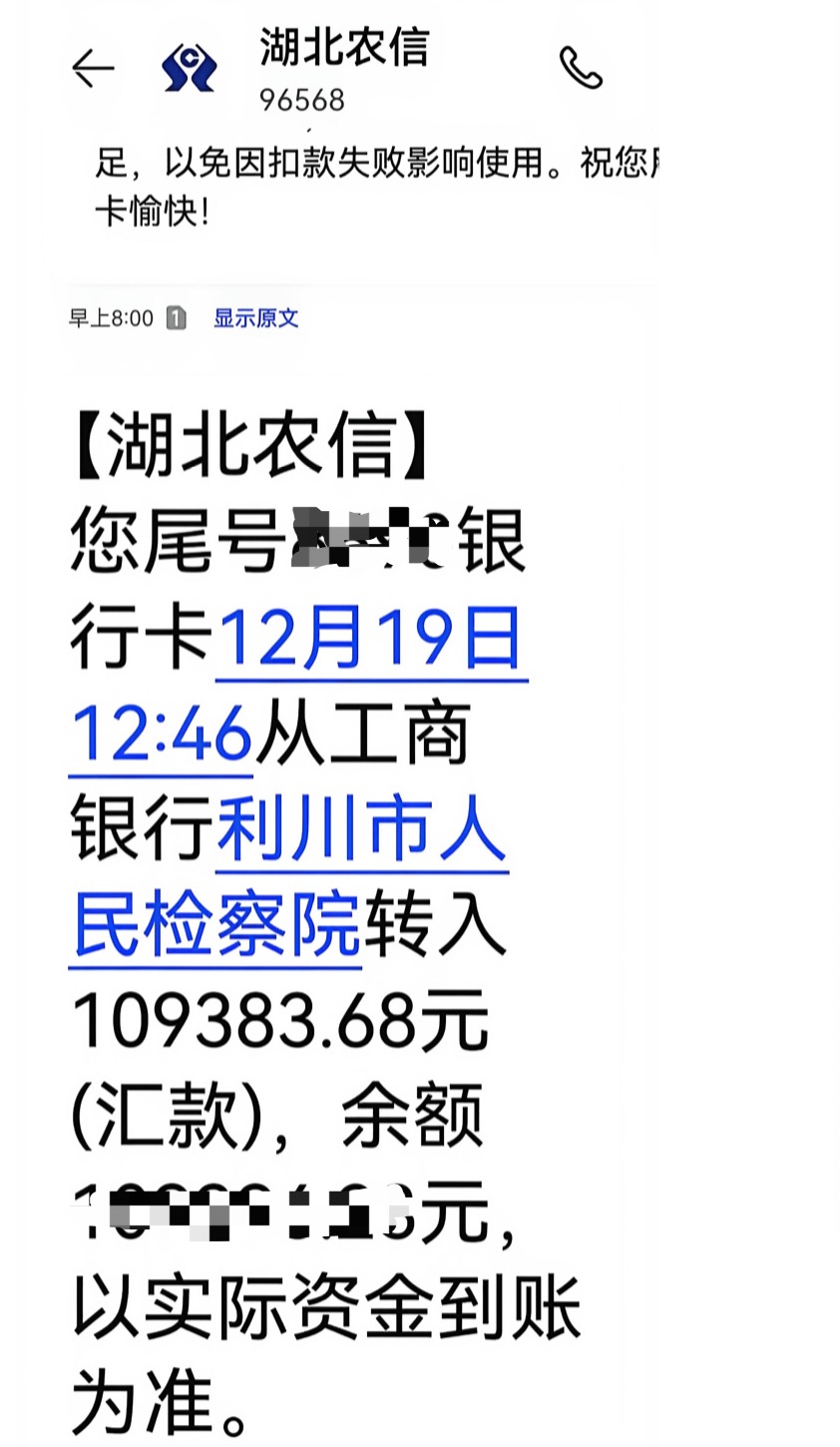 2023年9月28日,利川市人民检察院对三人分别作出不起诉决定,被释放前三人合计被错误羁押达800多天。澎湃新闻(www.thepaper.cn)从李氏父子三人处获悉,近日三人已各自收到国家赔偿款,总赔偿金额为43万余元。