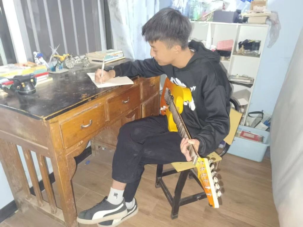 在创作音乐的过程中,孩子们也获得了温暖与力量。周爱香刚升入初中时,陌生的环境与加重的课业,像一层厚重的茧将她包裹。“那段时间,我经常一个人哭,特别想家,也觉得特别孤单”,她回忆。杨敬典安慰:“不如试着把心情写成歌?让音乐替你说话。”