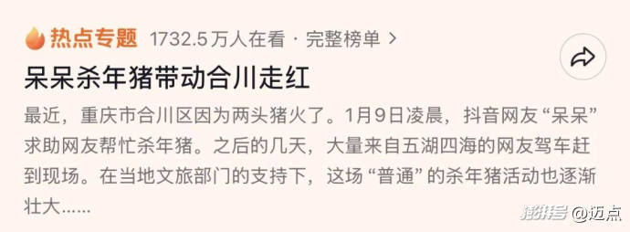 “家里杀年猪杀不完,求帮忙,管刨汤饭!”重庆合川一条朴素的求助视频,两天内引来上千人跨省奔赴,不仅人民日报第一时间报道,国台办都回应了相关新闻。而在此之前,上海甩出2570项春节文旅活动,把演唱会搬进春节档,福建则联动1500多场“闽式福年”活动+100条特色线路,连欧美网红都请来站台。