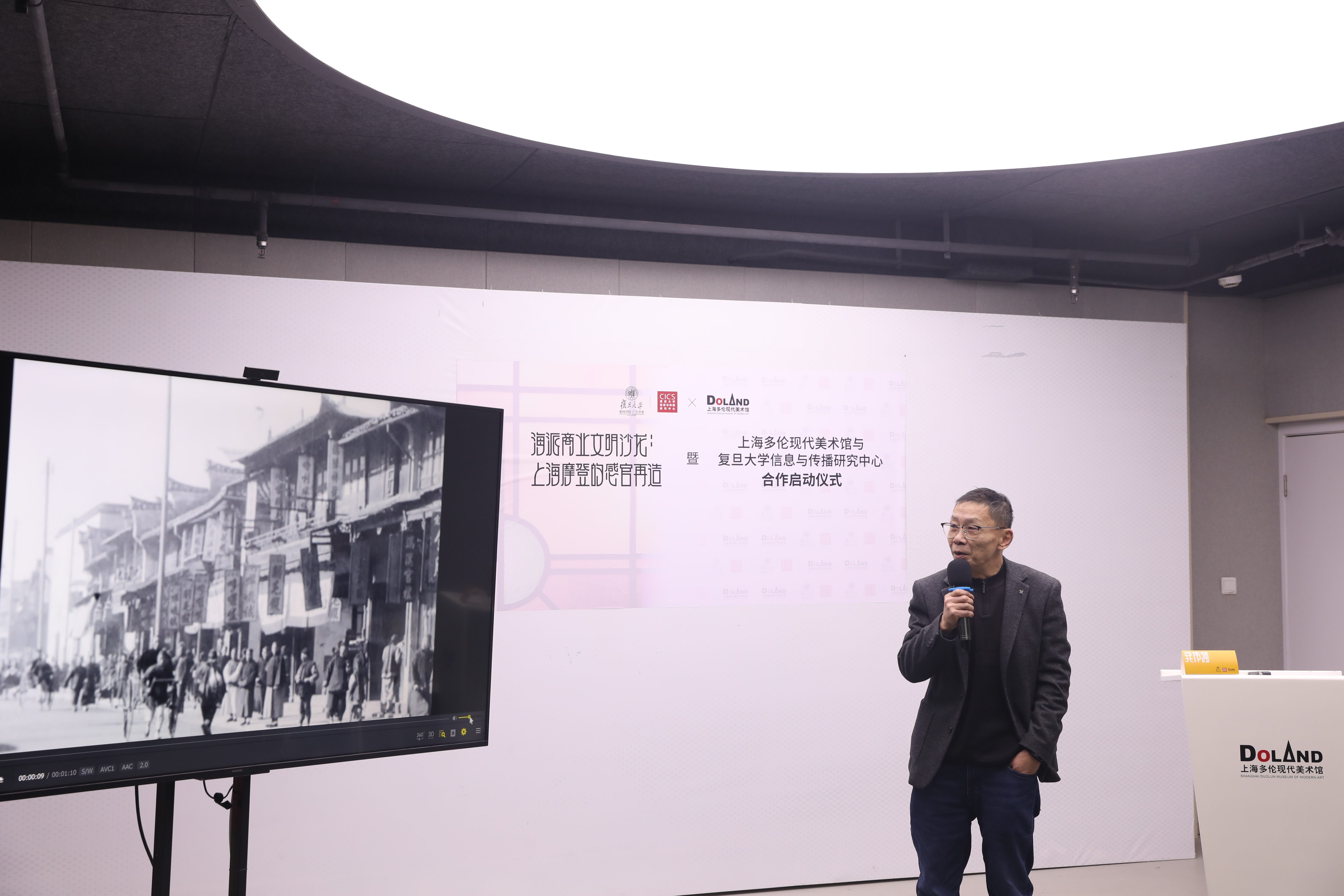 龚伟强:谢谢美术馆和复旦的各位老师!我想带大家通过几段早期胶片影像来领略上海的商业风情。涉及上海的影像出现得很早,大多由外国记者、传教士或旅行者拍摄——就像我们去外地旅游会拍些“新鲜玩意儿”一样,他们也想记录异国的日常。