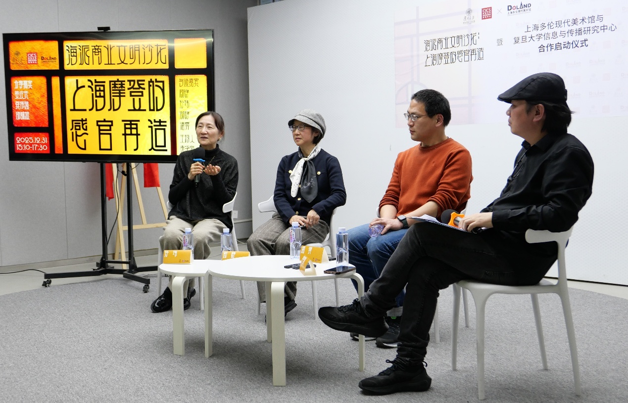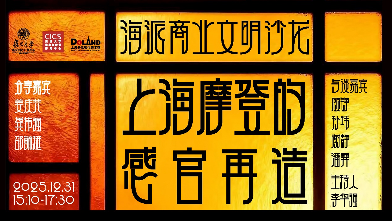 2025年12月31日,由复旦大学新闻学院广告学系、复旦大学信息与传播研究中心与上海多伦现代美术馆联合主办的“海派商业文明沙龙:上海摩登的感官再造”在多伦现代美术馆举办。活动由复旦大学新闻学院副教授李华强主持,邀请平面设计家姜庆共、历史影像收藏家龚伟强、海派商业艺术家邵毓挺进行主题分享,并由复旦大学新闻学院孙玮、谢静、潘霁三位教授参与圆桌对谈,共同探讨上海商业文明的历史脉络与当代启示。现将沙龙的发言内容整理为文字实录,以飨读者。