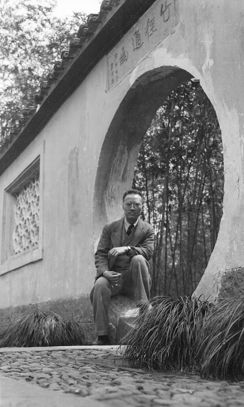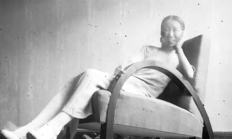 关蔚然坐在童寯设计的扶手椅上,童寯拍摄
