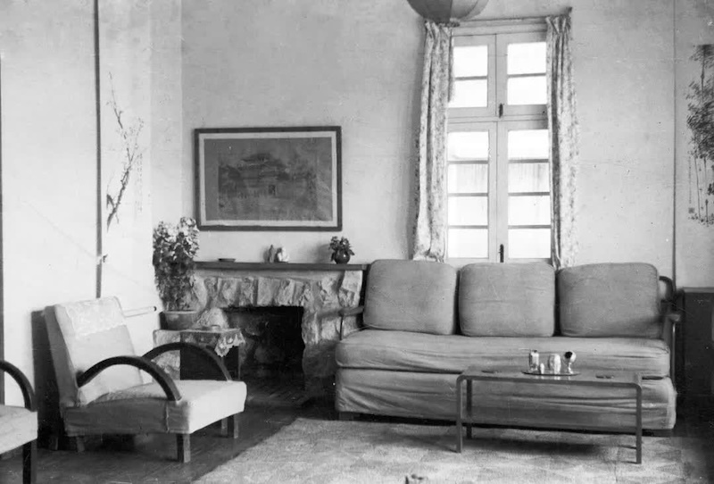 设计的细节巧思还体现在空间布局上和家具设计之中。虽然仅有三张图纸,但童寯为所有细节都提供了设计图。客厅和书房都设置画镜线,方便悬挂书画进行装饰。而客厅的南门底部特意开了一扇小门,那是猫咪的专属通道。客厅里有童寯为关蔚然专门设计的扶手椅,两侧的扶手由一条连续的弧形结构构成,延伸至地面形成沙发腿,展现出流畅的美学线条,也兼顾了稳固性和舒适性。