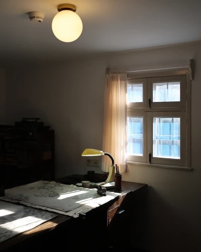 童明说,“客厅北侧则是童寯的工作室,即我们经常所谓的建筑师的图房。在这里,他完成了华盖建筑事务所在南京的多个重要项目。二楼卧室正对窗口则有一张小书桌。这张小书桌亦是他非常重要的写作空间。他晚年的许多著作,如对于西方建筑史的梳理,以及关于园林写作的手稿都在这张小台面上完成。”