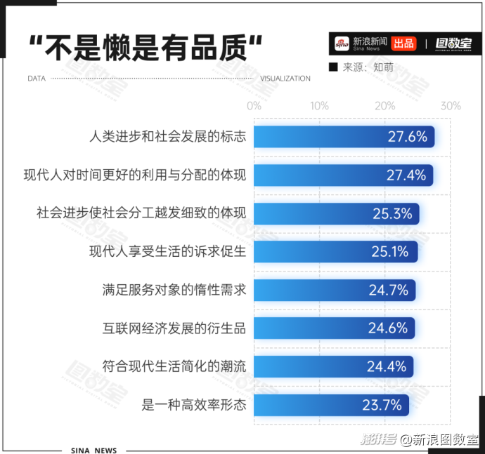 这背后是社会进步与生活观念的深刻变革。一项针对消费者的调查显示,超过四分之一的受访者认为,懒人经济是人类进步和社会进步的标志,是对时间的更优分配;同样很多人视其为现代人对时间更好的利用和分配。