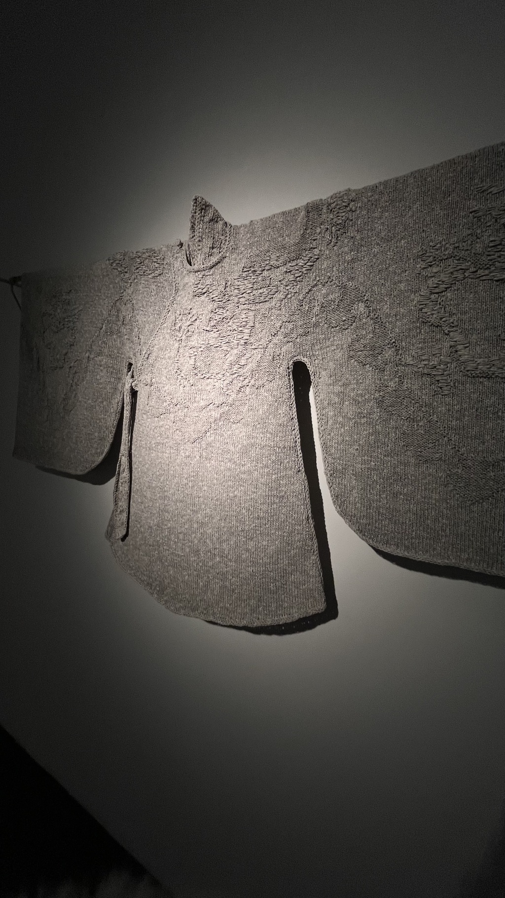 走进展厅,一个“宇航员”仿佛在向观众招手示意,据策展方介绍,这件作品并非普通摆件,而是一件可以登月的宇航服。