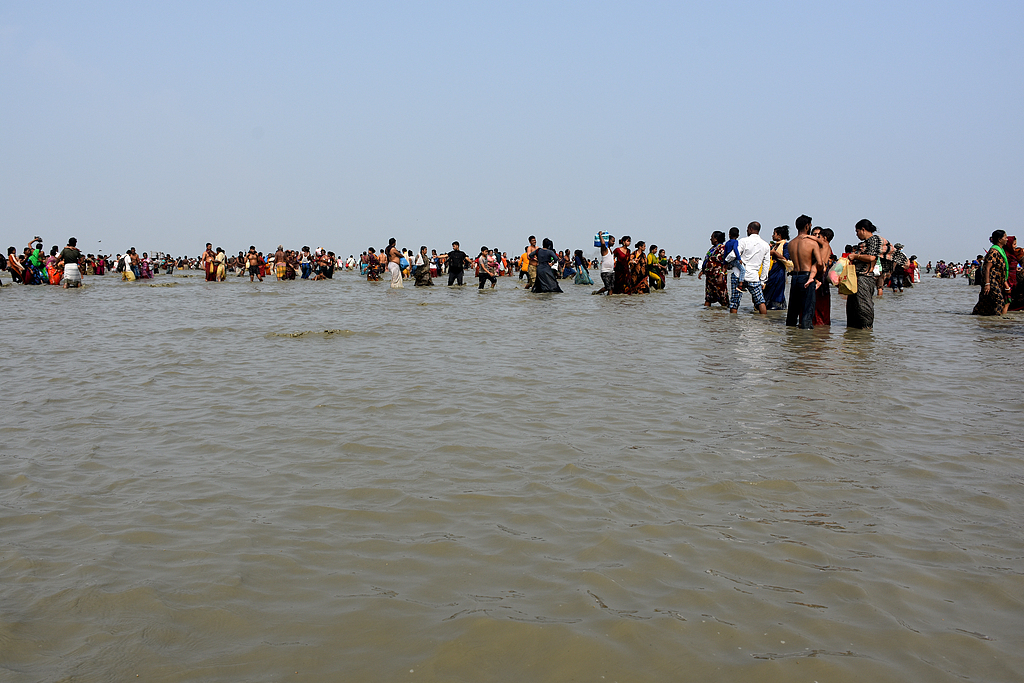 当地时间2022年3月30日,孟加拉国吉大港,数百名信徒在巴鲁尼河沐浴。视觉中国 资料图