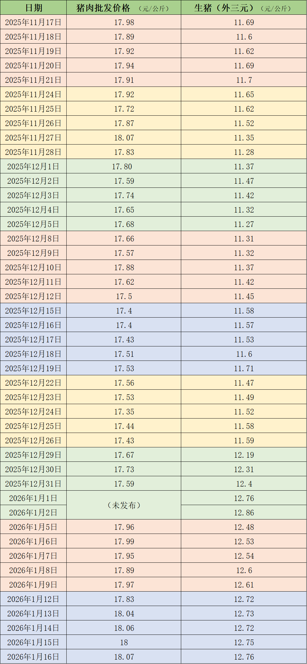 据农业农村部监测,1月16日,全国农产品批发市场猪肉平均价格为18.07元/公斤,与上周五(1月9日)的17.97元/公斤相比,上涨0.6%。本周的平均价格为18元/公斤,与上周17.95元/公斤的均价相比,上涨0.3%。