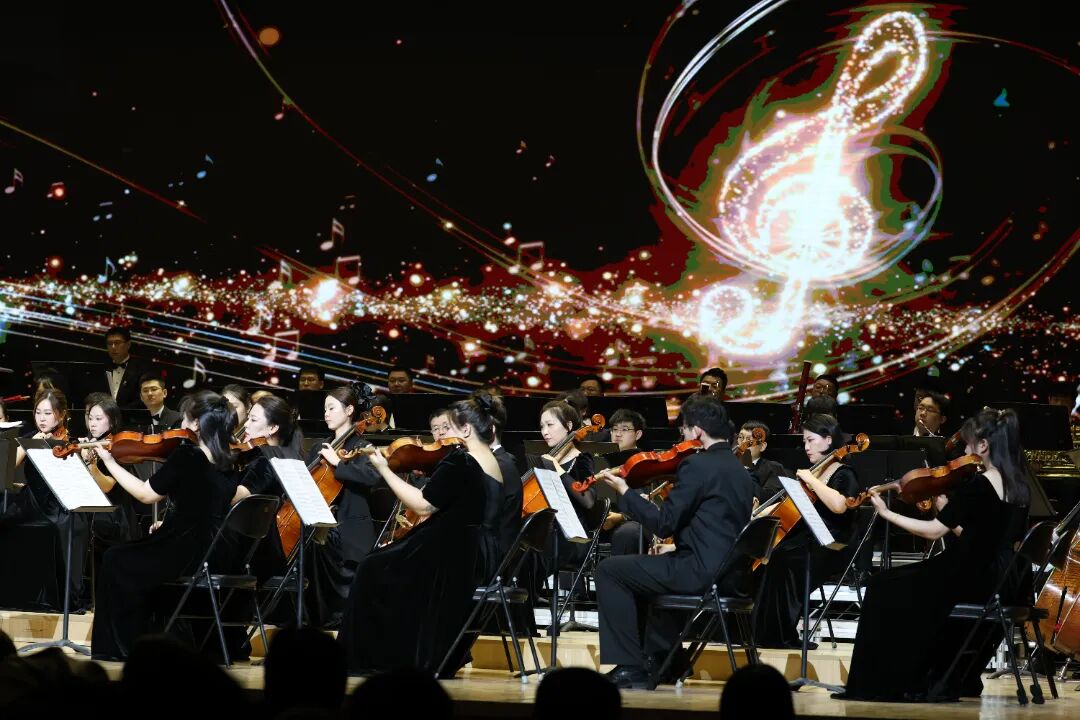 19时许,随着指挥家手中的指挥棒高高扬起,《共襄盛世》的旋律如冰雪消融后的春水般缓缓流淌,正式拉开了整场演出的序幕。