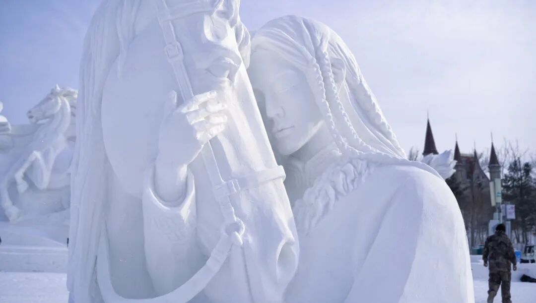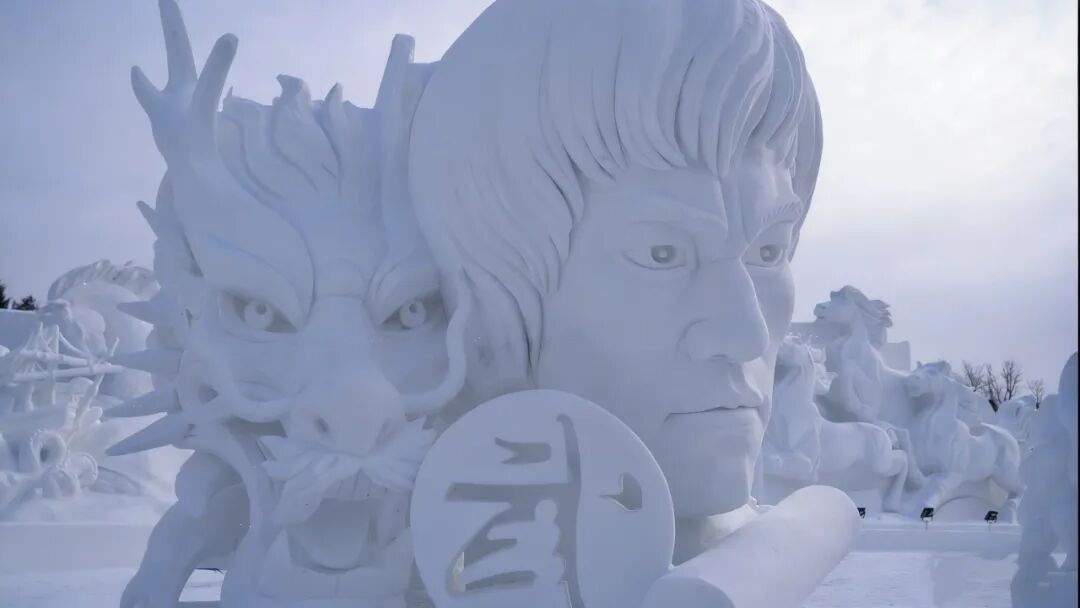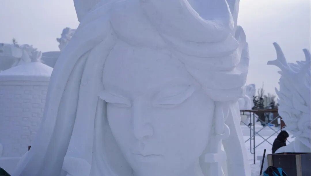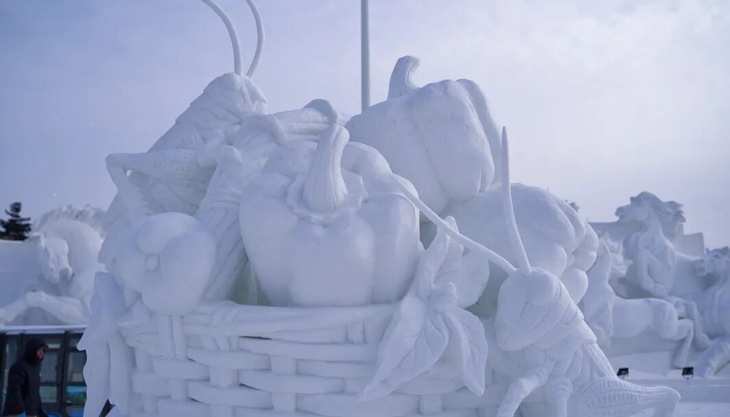 《一名惊人》则以雪为料,凭借饱满的造型与深刻寓意,与冰雕作品形成呼应,一冰一雪,一灵一拙,尽显雕刻者创作的默契与巧思。