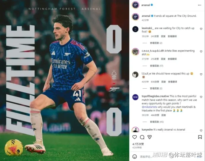 比赛结束不到40分钟,阿森纳官方社媒就被1.2万条评论淹没。相比于联赛杯赢球时的五千条,这次的沉默震耳欲聋。