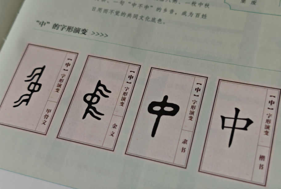 “‘中’字最早的时候,是在木杆的中间画了一个小圈,作为一个指示性的符号,表示居中的位置。”严志斌解释道,“《尚书》里所说‘允执厥中’的概念就是这么来的”。
