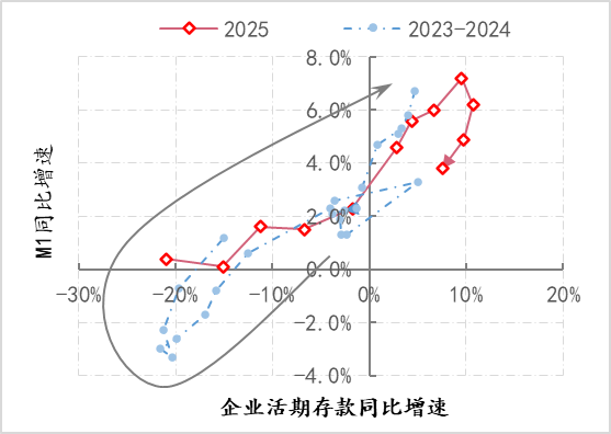 图4:企业活期存款与M1的变化